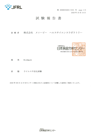 pH12の除菌水「BioSmash」は主なウイルスや細菌などの微生物を不活化することが実証されています。