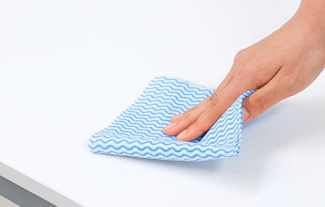 スプレーを噴霧、約30秒後に清潔なダスターなどで拭き取る。