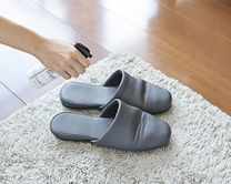 ファブリックシートやカーペットマットから30cm以上離しスプレーする。ミストで表面がかるく湿る程度にスプレーし自然乾燥させる。