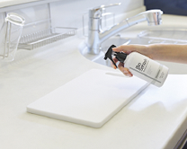 洗浄したまな板に適量のスプレーを噴霧し自然乾燥させる。使用前に軽く水洗いをする。