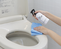 便座や蓋、レバーや操作パネルなどは適量を噴霧し約30秒後にダスターなどで拭き取る。